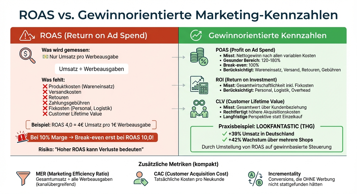 Dieser Artikel zeigt, warum ROAS oft in die Irre führt und welche Kennzahlen Ihnen echte Kontrolle und Klarheit geben.