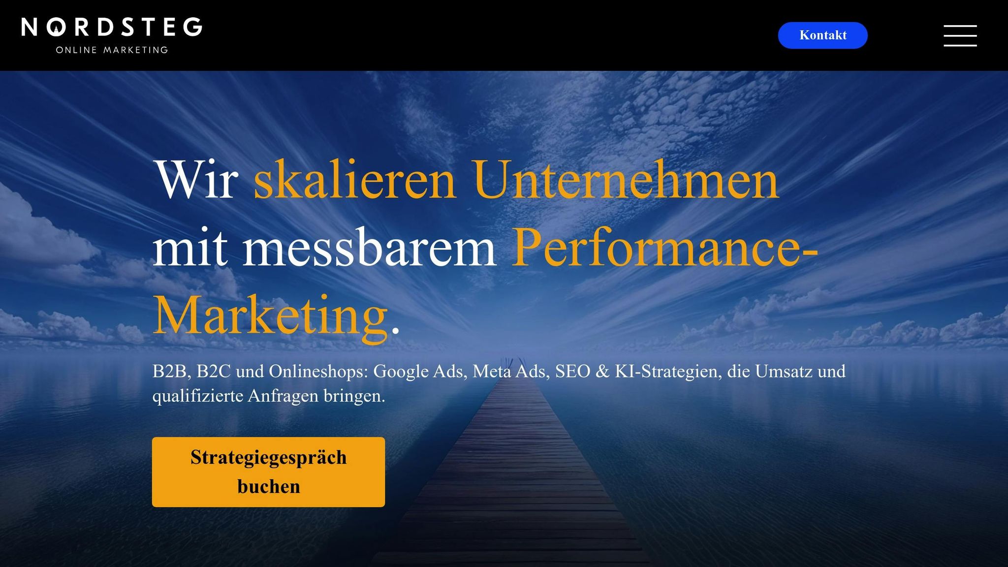 Nordsteg starts exactly here: with a clear strategic framework - whether the Marketing Masterplan (€1,490) or the** Marketing Roadmap** (€6,990) - we create the foundation for focused execution. We analyse whether your business model should be aligned to leads or revenue, define the relevant metrics and calculate budgets so they can be deployed profitably. Only then does operational execution follow, for example through Google Ads, SEO or performance funnels. The result: predictable and sustainable results based on a clear, business-model-oriented plan.
