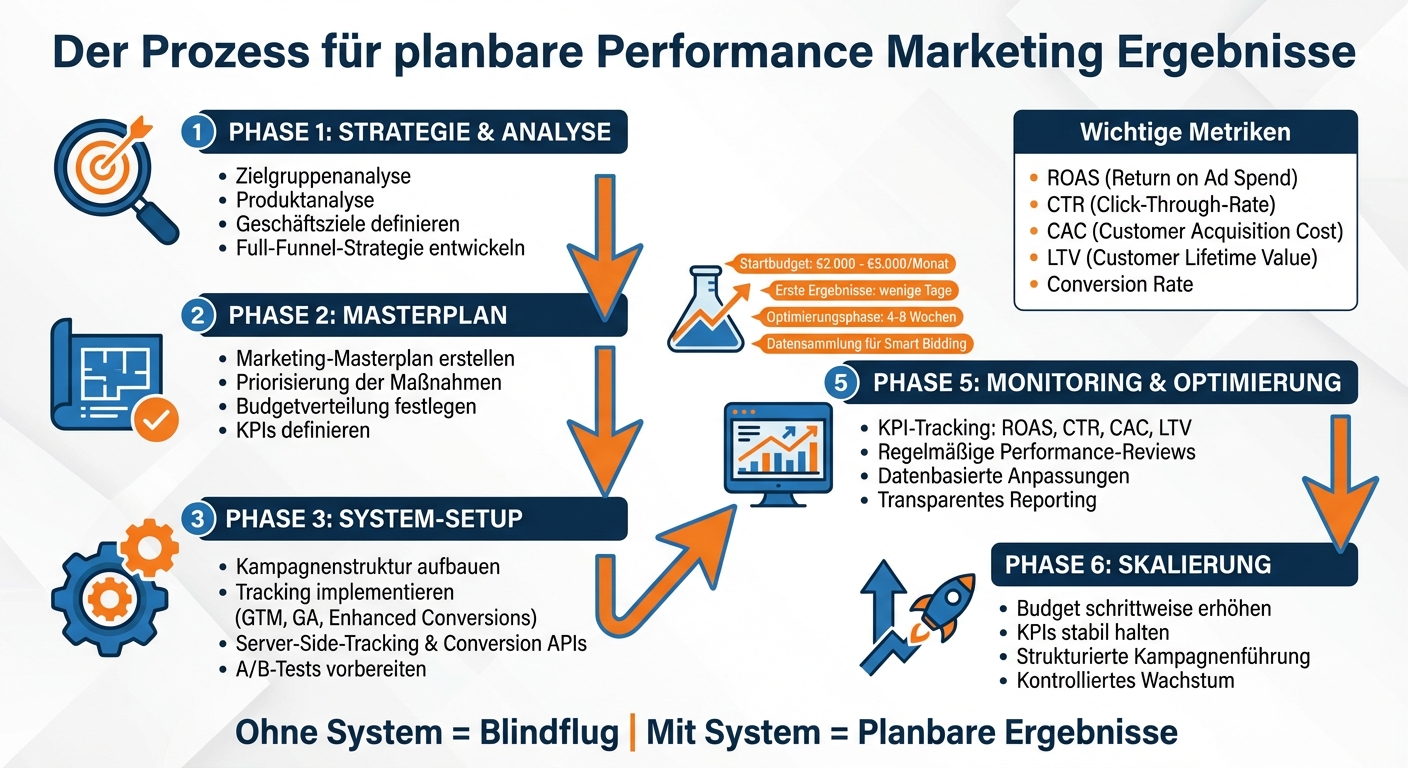 A well-designed system makes performance marketing predictable. It shows not only the current status but also which steps are necessary next. Budgets can then be deployed in a targeted way, and decisions can be made on a sound basis. This systematic approach forms the foundation for the process described below.